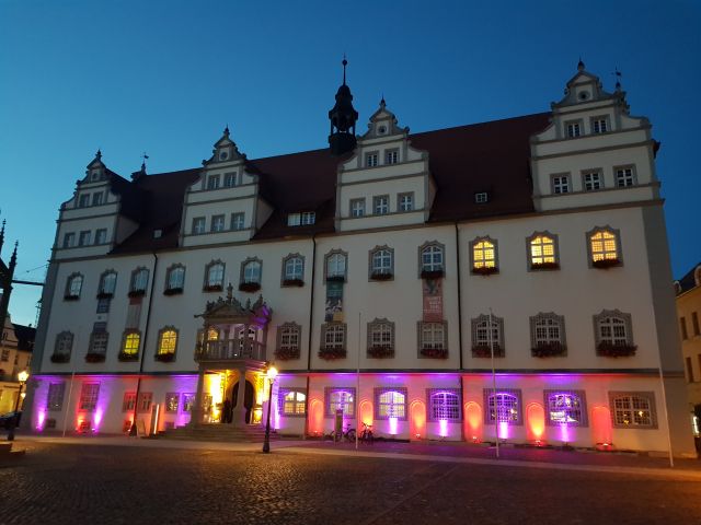 Vor dem Rathaus befinden sich die Denkmale für Martin Luther und Philipp Melanchthon. Das Lutherdenkmal von 1821 war das erste öffentliche Denkmal für eine bürgerliche Persönlichkeit.